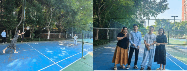 在双打比赛中,教师们默契配合,积极协作,展现了团队合作的精神。场边的未上场老师们也不甘示弱,化身为拉拉队,场馆内充满了加油声、欢呼声和笑声,整体气氛轻松愉悦。经过数轮友好的角逐,本次活动在全体教师的欢声笑语中圆满落幕。最后,全体教师在球场中央合影留念,用一张洋溢着笑容的“全家福”完美收官,留下了难忘的回忆。