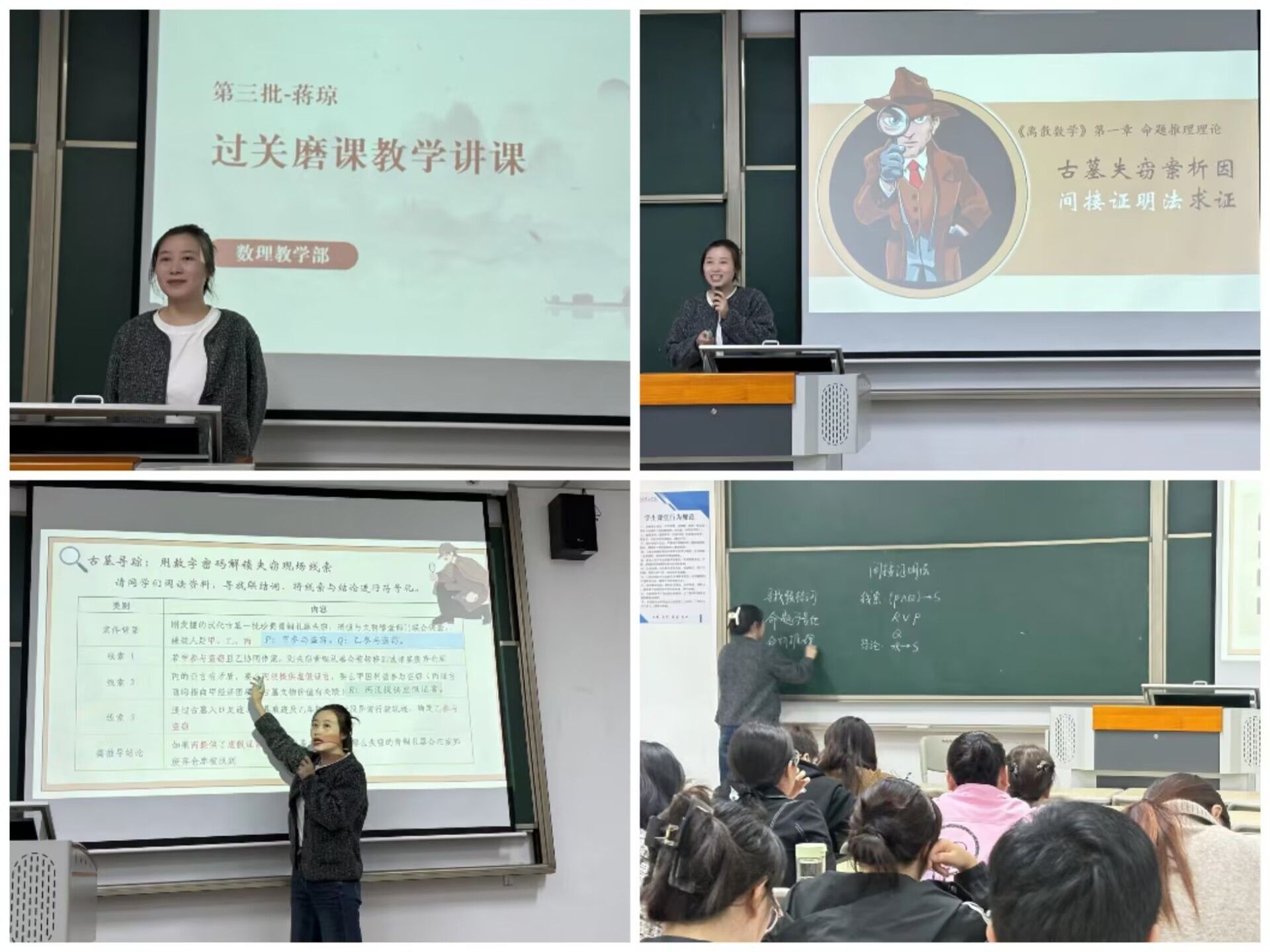 2025年9月25日,基础数学教研室全体教师在行者楼105开展了蒋琼老师的首轮磨课活动。蒋老师紧扣《离散数学》教学大纲中 “理解命题推理的间接证明方法(CP规则法、反证法)”的目标,选定离散数学教案第5次课作为磨课课题,打磨教案。