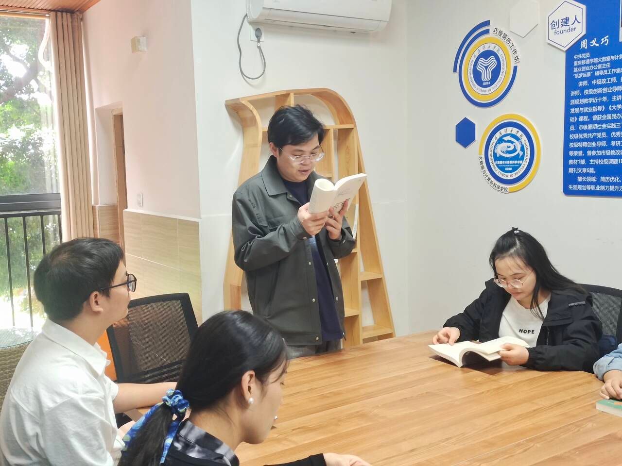 为深化“信息产业大咖传记阅读计划”,推动“书香校园”文化建设,数理教学部应用数学教研室于10月22日下午,在廊桥议事厅开展了“大咖阅读”活动。此次活动以“读大咖传记,促教研创新”为主题,旨在通过阅读名人传记,感悟奋斗精神与创新思维,激发教师的专业成长动力,并将阅读所得转化为育人力量。