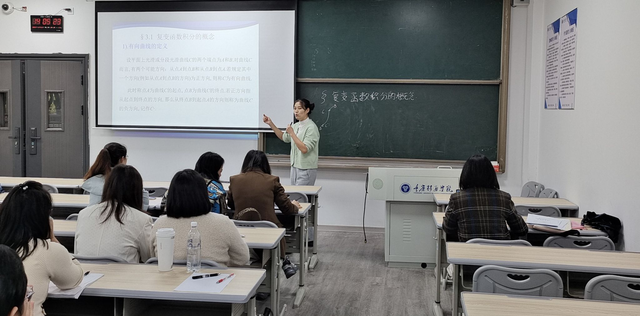 肖丹老师在教学展示中,以“复变函数积分的概念”为课题,围绕“温故知新、逻辑推演”展开教学。她从有向曲线等基础定义切入,引导学生类比高数中的定积分思想,自然导出复变函数积分的定义。接着系统讲解积分的四大性质及存在条件、计算方法,逐步推进,化解抽象理论的难度,实现从概念到应用的闭环,为同类课程提供了有益参考。