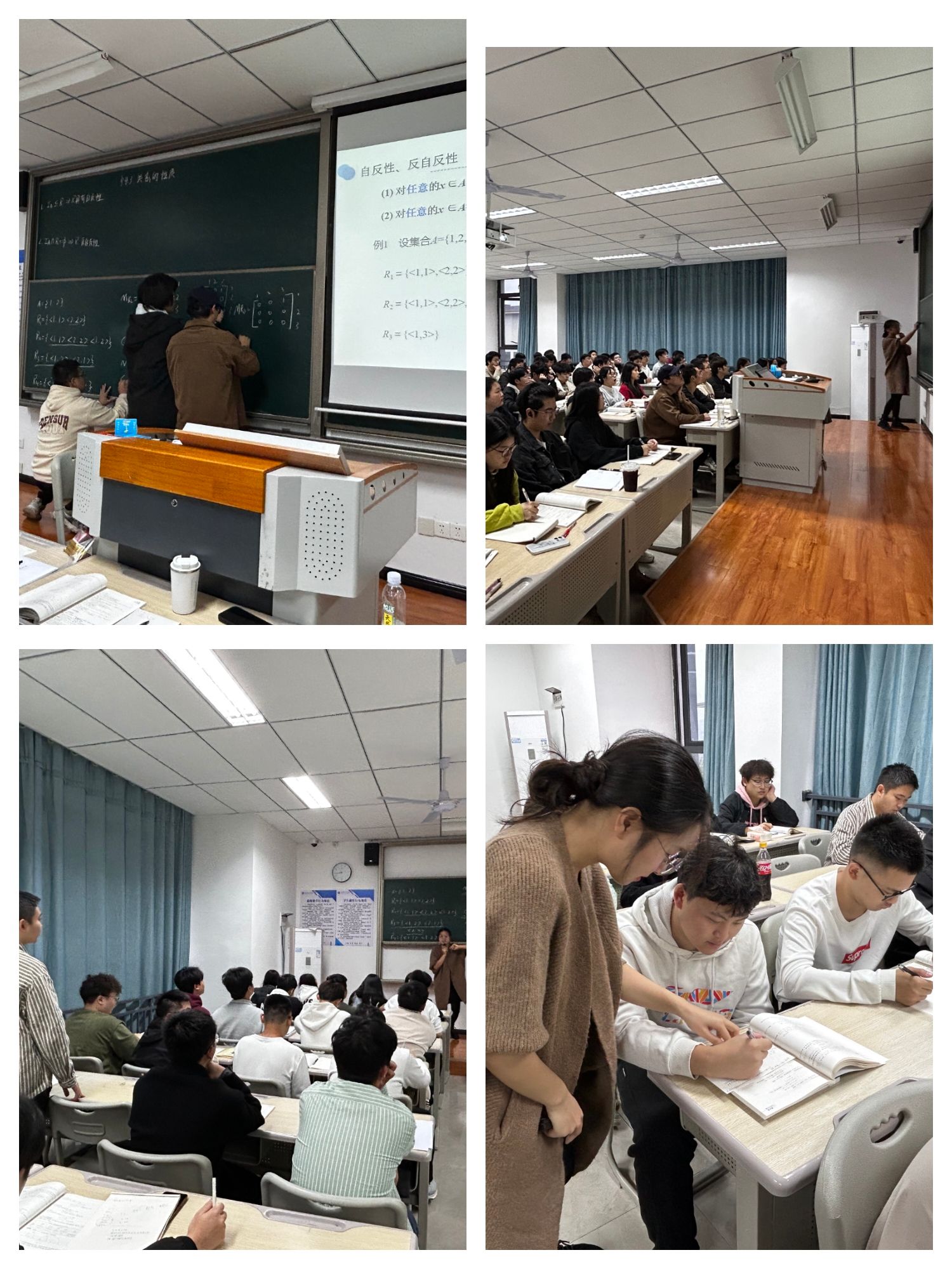 为深化课堂教学改革,提升课程教学质量,打造优质高效课堂,10月,谭艳菲老师围绕《离散数学》课程中“关系的性质”一节开展三轮的打磨实践活动,从教学思路的反复打磨到课堂实践的精准落地,再到课后反馈的持续优化,课程组、教研室全体教师凝心聚力、层层递进破解教学难题,最终为学生呈现了一堂逻辑清晰、互动充分、成效显著的课程。