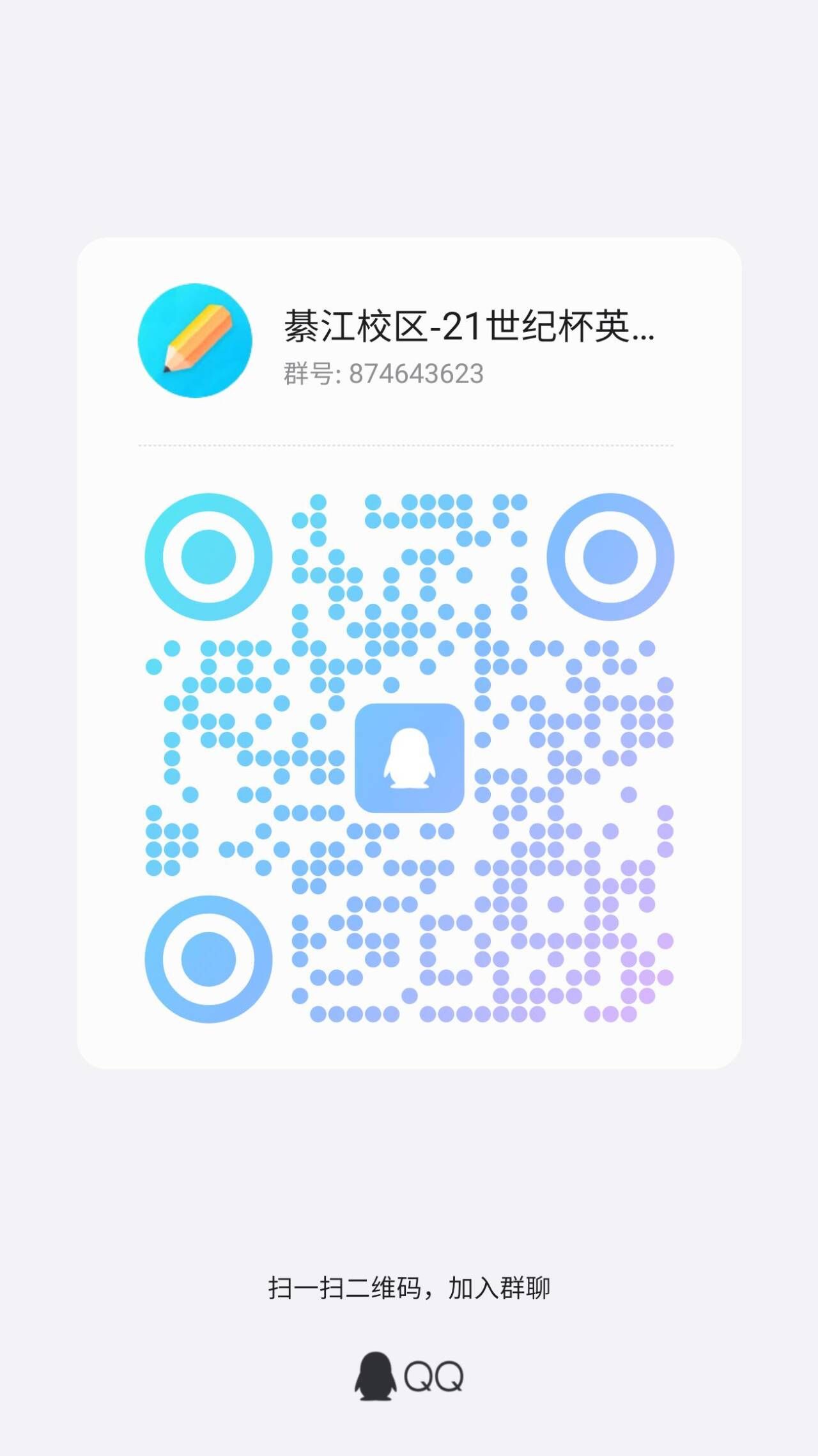 同时加入“21世纪杯英语演讲比赛移通校赛”QQ群(,綦江校区群号:874643623)