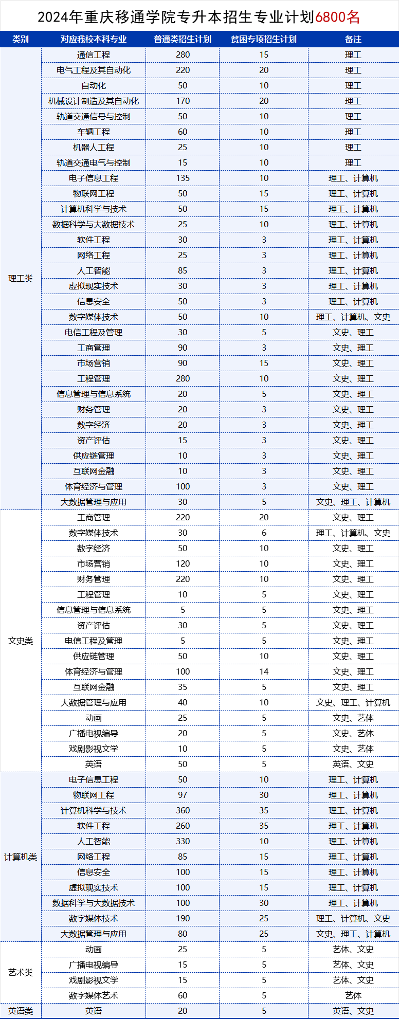 【招生工作】转发自:重庆移通学院2024年专升本招生计划